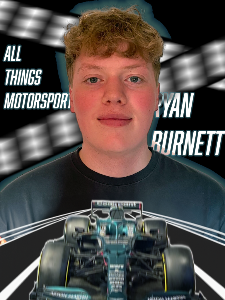 This self-promotional poster is all about my knowledge of motorsport. I used a picture I took of a formula 1 car when I went to Silverstone and added motion blur, so it looked like it was moving fast. I gave it a drop shadow and a white outer glow just so it stood out a bit more. I drew what looks like part of a racetrack that was placed behind the car, so it has a background. With my portrait I also gave that a drop shadow and outer glow but made the colour match the F1 car. I used a sans serifs font with italics and tight kerning to make the text look bold and fast. I also gave that a slight outer glow of green as well. I then created black and white strips to mimic the finish line or the chequered flag and used motion blur to show that it is linked with the car.