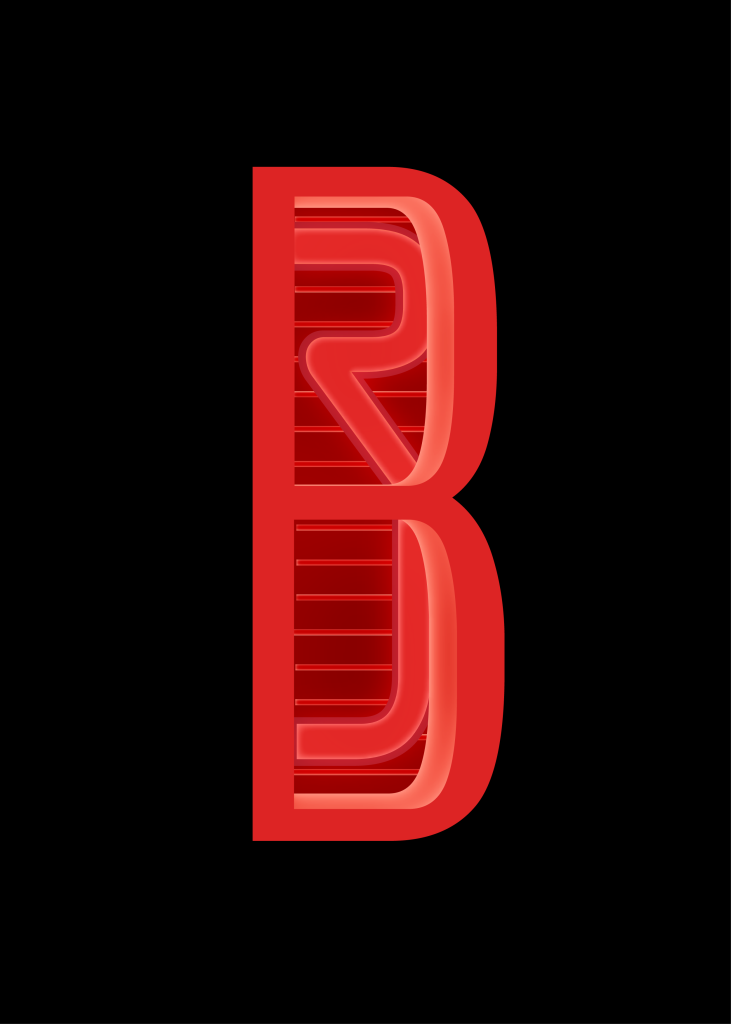 This logo has my initials RJB in it. My thought process with this was that the B looks like a back tailgate light on one of those ford trucks. So, I used a red colour scheme and used lighter shades and shadows to create the luminosity glow that a taillight would have. I stretched out the R and the J so it looked like they connected together to make the inner light and indicator. The typeface I used gave the R a very unique look as the middle doesn’t join up with the stem. This makes people look twice to actually see there are letters there. I used inner glow to give the outline of the taillight a slight gradient for realism as some parts can differ in luminosity. The closer to the middle and the back I got I started to get darker with my colours to try and create a 3D effect, which worked well.