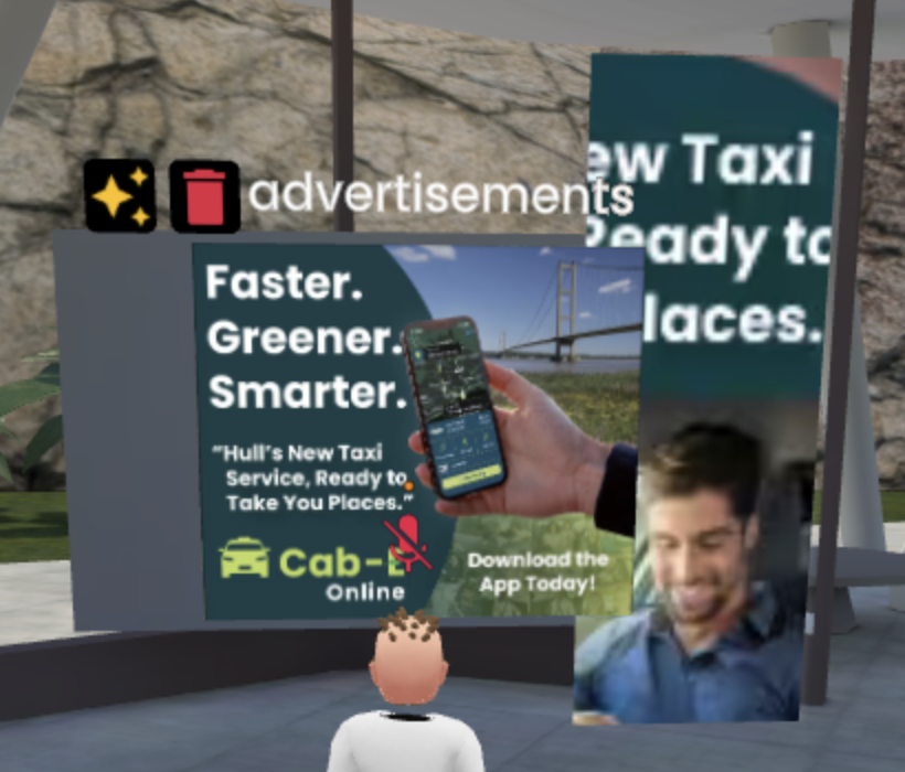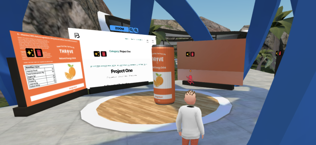 A big part of this task involved thinking like a curator rather than just a designer. I had to decide where users would spawn, how they would move through the space, and what they would see first. These decisions were guided by principles of immersive UX and spatial narrative (Sahu, 2025). I added a few interactive features such as clickable videos and a magnifying glass tool so users could zoom in on smaller details. Additionally, I imported a 3D model of an energy drink can from a previous project and applied a gentle rotational animation. It’s a small detail, but it helped to bring a sense of movement to the gallery without becoming a distraction. This subtle use of motion reflects Eriksen’s (2023) point that animation should enhance engagement rather than overwhelm it.