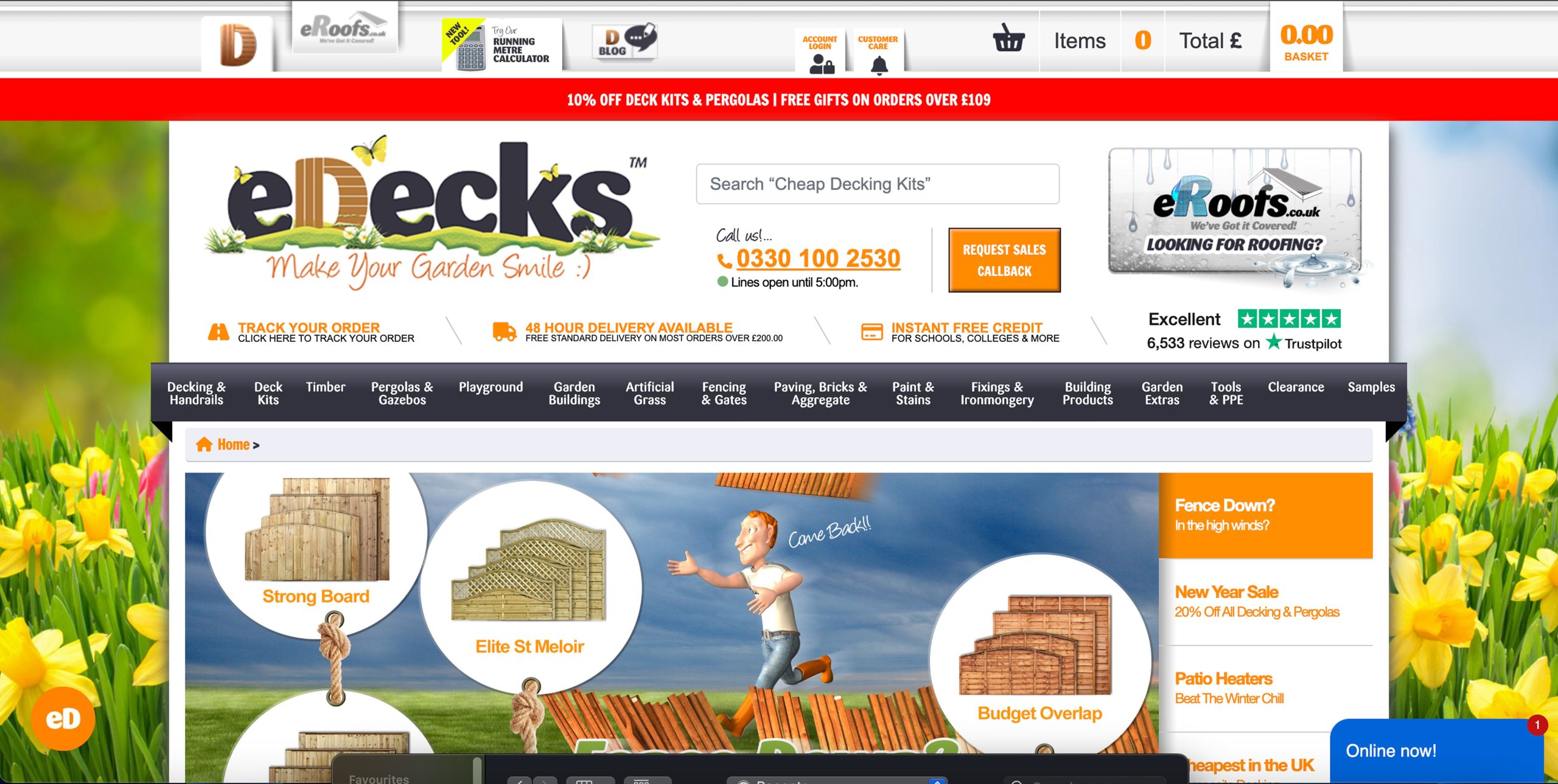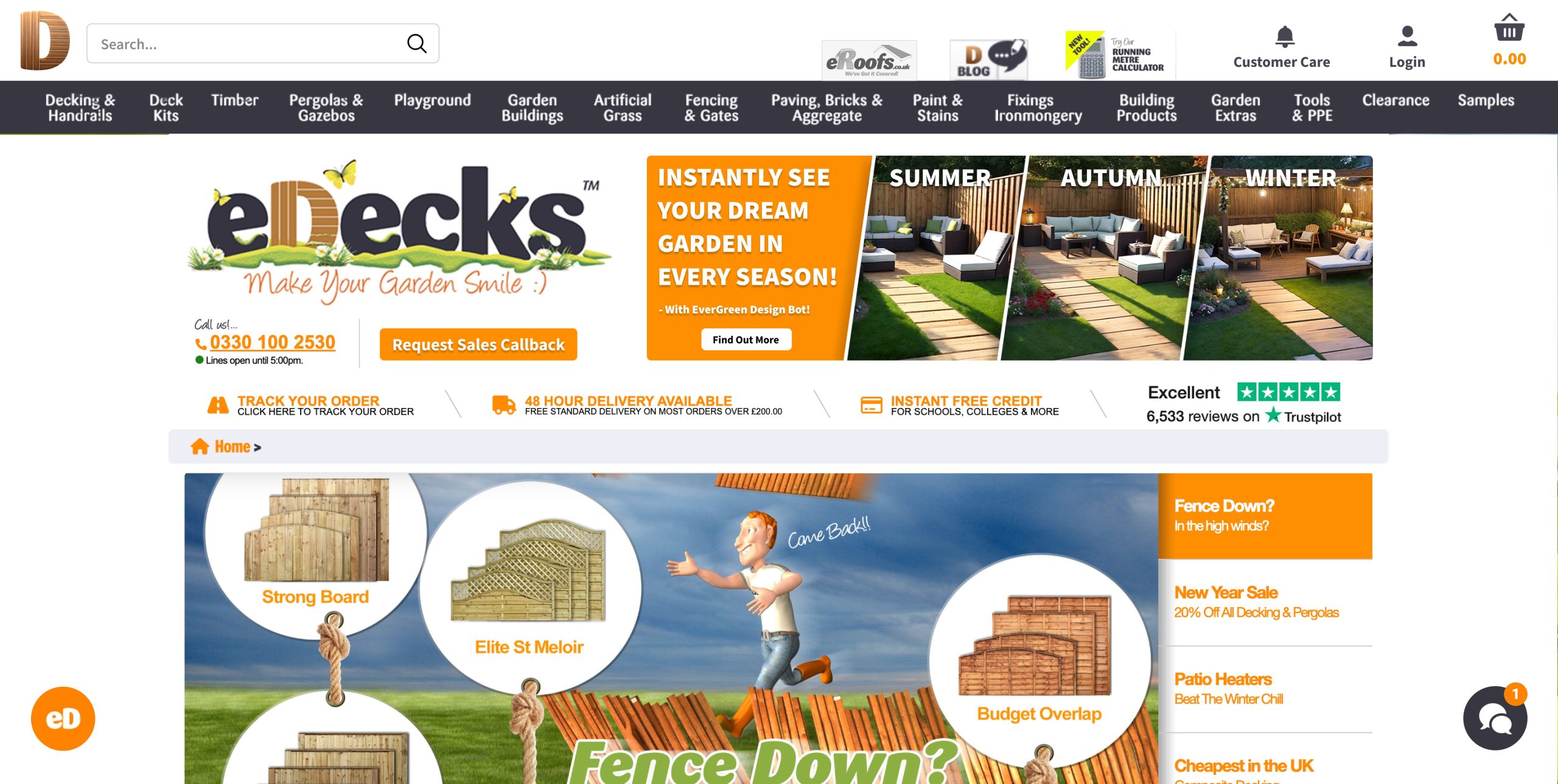 My homepage design adopts a visually engaging and interactive layout, incorporating seasonal visuals and an AI tool to “instantly see your dream garden.” B&Q’s homepage prioritises seasonal relevance and promotions, while Wickes leans toward functionality and category hierarchy. Drawing from B&Q, I embraced a bold colour palette allowing for the existing category banner to look 100 times better just by changing the colour. Wickes’ navigation not only looks strong but interactive and personalised, like the current eDecks category banner, so I ensured I kept the categories the same. Instead, I took inspiration from B&Q’s colour palette, using a bright orange as the primary to highlight and then a dark navy blue to make other elements stand out like the category banner.